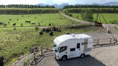 一日一組限定の【ザ・北海道】を堪能できるプレミアム車中泊スポット 十勝しんむら牧場が運営する極上のパノラマテラスの1棟貸し切り、 目の前には放牧された牛たちがいて、その先は地平線まで見える絶景のパノラマ 1階は暖炉がありガラス張りの空間で夜もムーディな雰囲気、 屋上はテラスになっており、満天の星空はまるで宇宙の中にいるよう、 こだわりのサウナがあり、地下水から組み上げた水風呂もご用意 ・シャワー・トイレ・キッチン・BBQグリルも完備 牧場で生産された豚肉やソーセージ、そして濃厚でここでしか飲めないミルクもいただけます。 1泊2食付き車中泊プラン 1名様30,000円 食事なしのお子様は1名様5,000円 最低大人2名様より受付(現在はプレオープン価格ですので、要事前お問合せ)ご予約は 十勝しんむら牧場 メール ushi@milkjam.com
