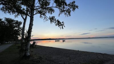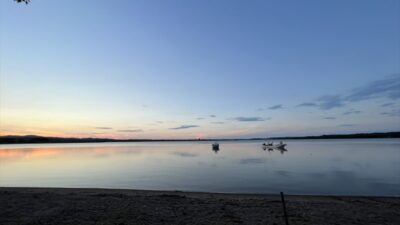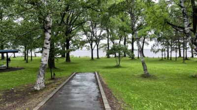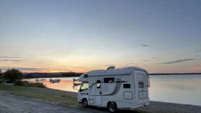 近くにスーパーや温泉もあるキャンプ場 水遊びもでききれいなキャンプ場 車中泊は駐車場及び湖側の路側帯ですが、夕陽が絶景の隠れスポットです。 女満別空港へ降りる飛行機をバックの夕陽は本当に幻想的です。