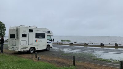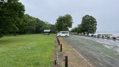 女満別湖畔キャンプ場の奥にある野営場、こちらの方が比較的空いていて目の前に女満別湖が広がりキャンピングカー泊はこちらの方がオススメ オフシーズンが空いていて良いかもしれません。