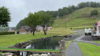 5から6月の芝桜のシーズンは一面ピンクの畑が広がります。場内に温泉あるキャンプ場