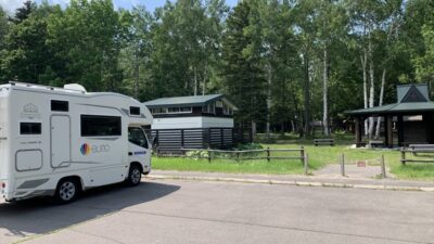 阿寒湖温泉から近く、道東への移動途中 夜になった時に車中泊利用すると便利 近く野オンネトー湖と温泉がオススメ 鹿も普通にやってくる。足湯があるキャンプ場