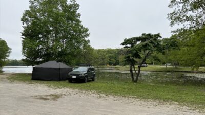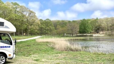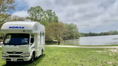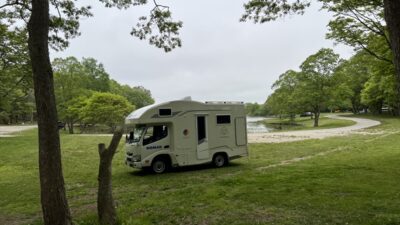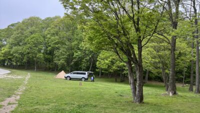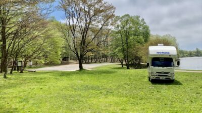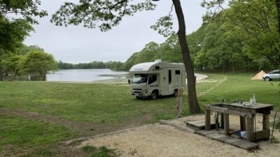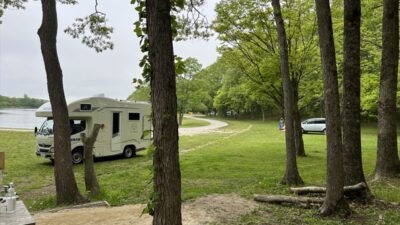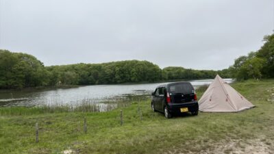 千歳空港からも近くいのに静かな森と静寂な水辺で快適に車中泊できる穴場的スポット コイやフナ釣りもできます