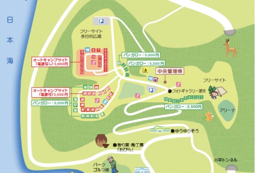 日本海を望む丘にあり夕陽がきれいなキャンプ場