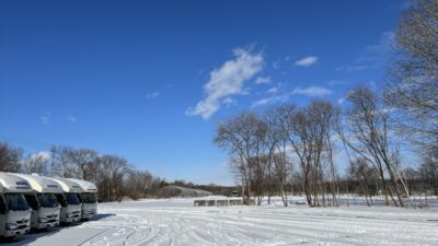 新千歳空港から数分、元パークゴルフ場をリニューアルした東京ドーム2個分の広大なキャンプ場、札幌近郊でここまで空が広く広大で平坦な草地が広がるキャンプ場はありません。 百組入ろう密とはまったく無縁で、まるで道東の大平原の真ん中にいるかのような素敵なキャンプ場が誕生、キャンピングカーも場内の好きな場所で車中泊OKです。 新千歳空港まで数分なのでレンタルキャンピングカーを借りた初日や最終日の車中泊スポットとして最適です。 上空は滑走に降りるジェット機が飛ぶので飛行機マニアにはたまらないキャンプ場です。 通年営業で冬キャンも大人気! https://campground-1795.business.site/