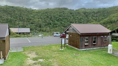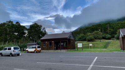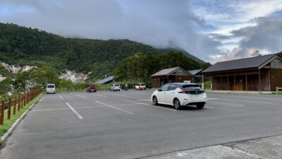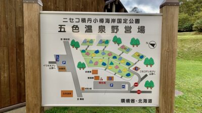 向かいに大人気の野趣あふれる五色温泉があり、イワオヌプリ アンヌプリのトレッキングもできる山を楽しめるキャンプ場 駐車場での車中泊も快適