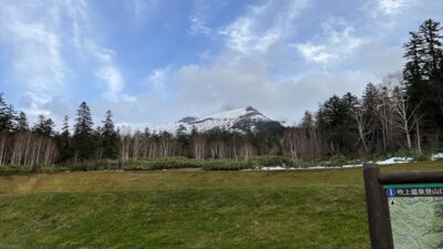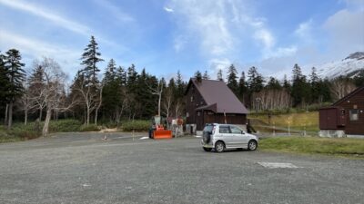 十勝岳の中腹にあり、標高が高く、山の景色が最高! サウナーの聖地である吹上温泉のすぐ横なので温泉・ビール・温泉・ビール三昧 キャンピングカーは駐車場での車中泊可(有料)