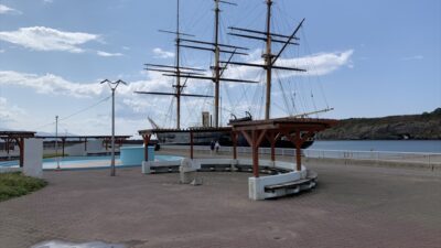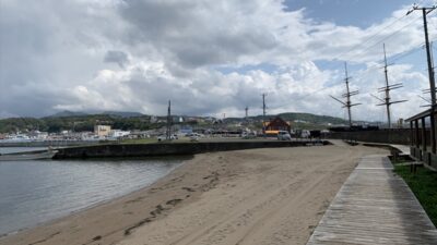 実際のキャンプ場は駐車場から歩いて半島のような丘にあり 海と空が広くて最高ですが、車中泊は手前の駐車場になります。海水浴や釣りができて駐車場も広いのでオススメ、ここは江差の町に出て美味しいものを食べて車中泊する事をオススメ