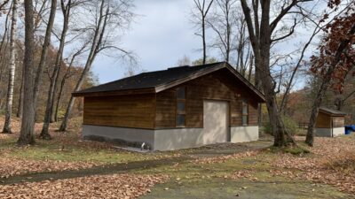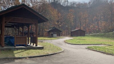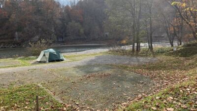 3箇所のサイトに分かれており、オススメは一番下の川べりのキャンプサイト、目の前が川なので川のせせらぎ音を聞きながら釣りをしたり、焚き火も楽しめる。