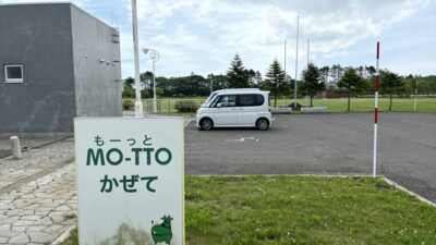浜中町さんのお意気込みを感じる芝生などの手入れも行き届き整備された車中泊スポット 浜中町産の牛乳を使ったアイスクリーム作りのほか、各種体験が楽しめます。