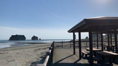 きれいな海沿いにある海水浴も楽しめるキャンプ場、夏休み中の週末は混雑しますが、SUPや波乗りもできて海の幸BBQは最高、