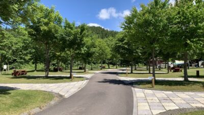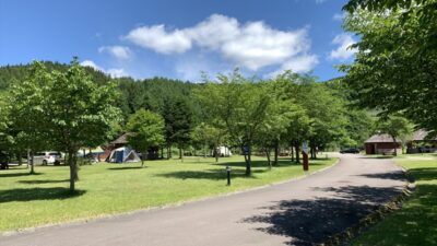 綺麗に管理されたダム下にある高規格オートキャンプ場、芝の管理も行き届いており、設備が充実した快適なキャンプ場 キャンピングカー車中泊も快適です。