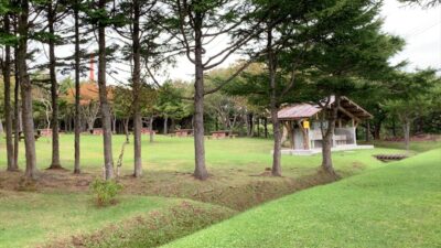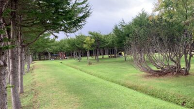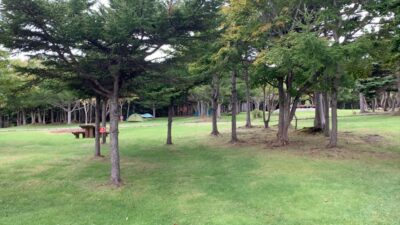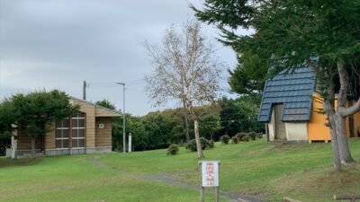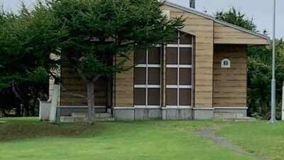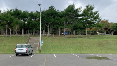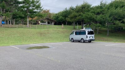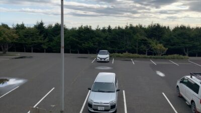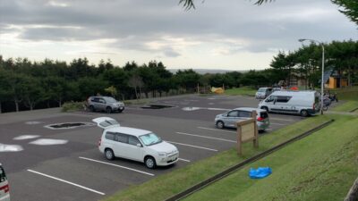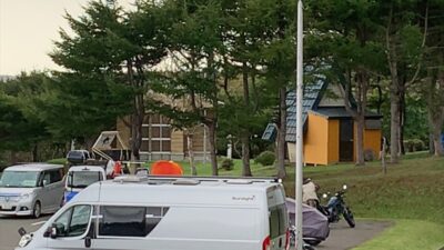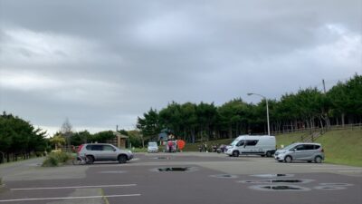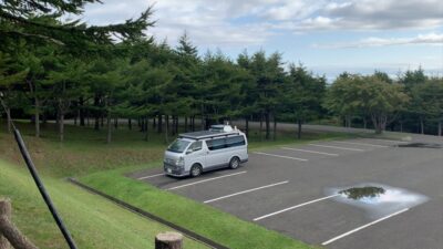 北海道最北の街稚内市街地の小高い丘の上にあるキャンプ場、キャンピングカーは駐車場車中泊です。夏場は混雑して満車になる