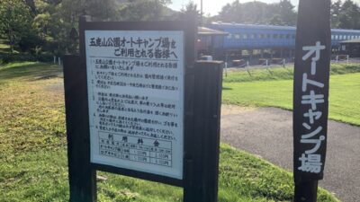 こじんまりとしてますが、キャンピングカー泊には静かできれいな五鹿山公園内にあるキャンプ場